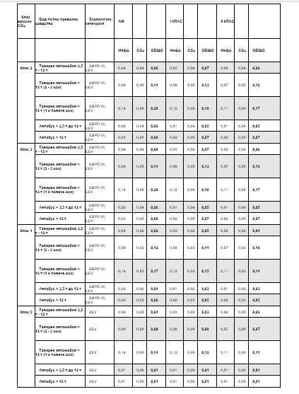Категория Евро 5: За тези превозни средства е предвидено 30% намаление спрямо най-високата тарифа.