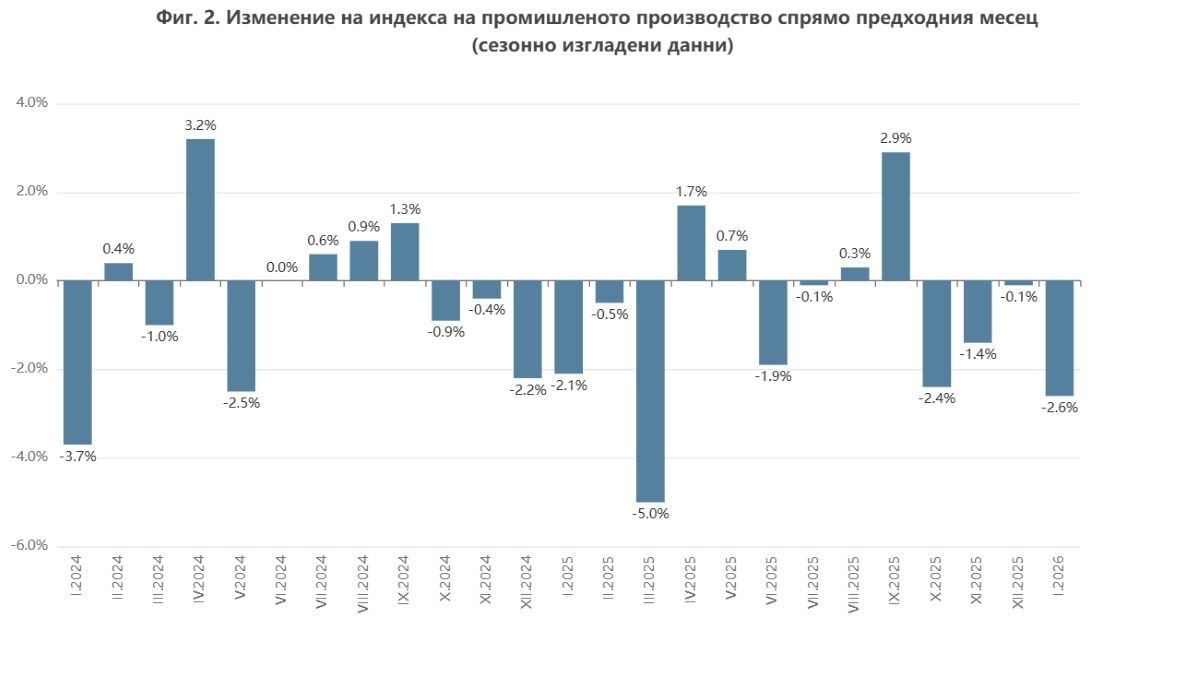 При месечно сравнение (спрямо декември 2025 г.), статистиката отчита най-големият спад от март миналата година, когато потъването достигна 5%. Преди това по-голям спад на месечния индекс от сегашния имаше чак през януари 2024 г.