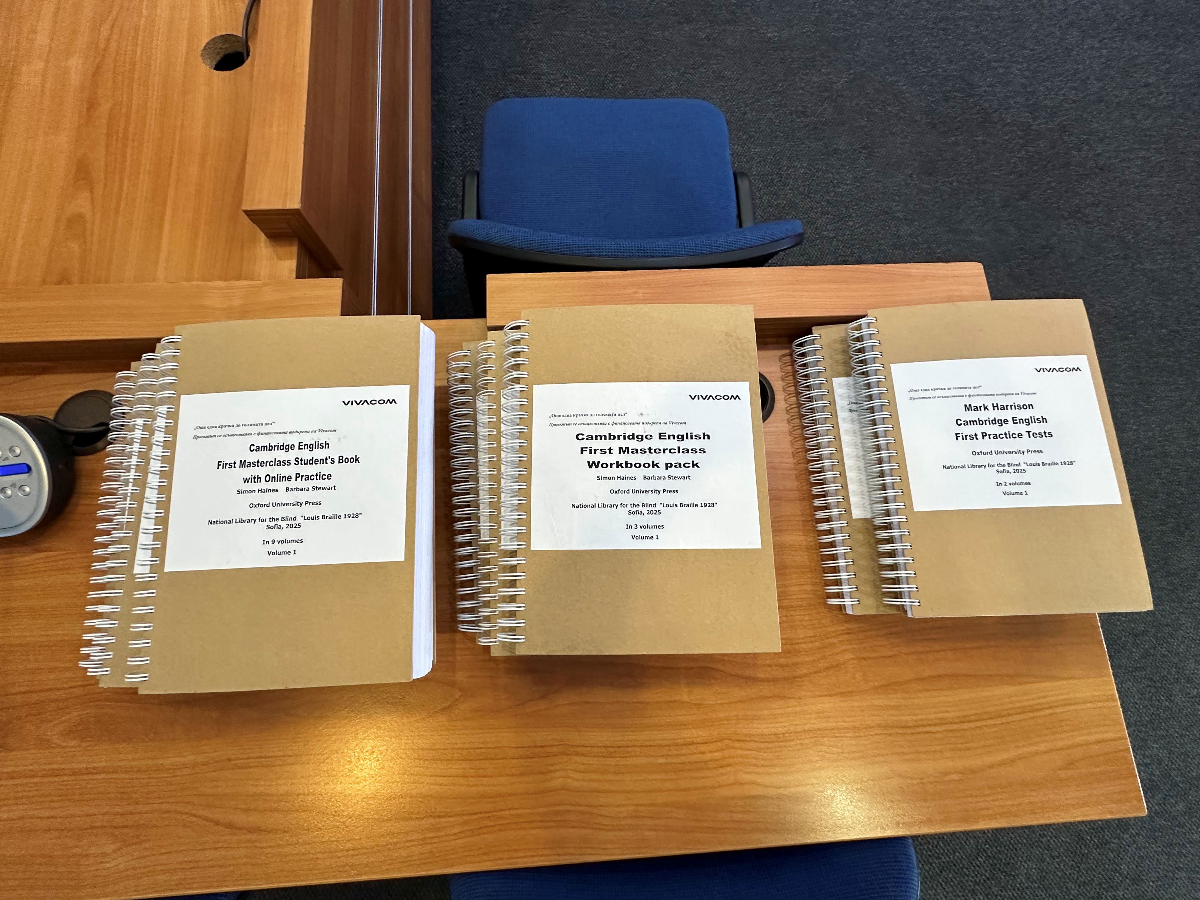 Първият в България брайлов учебник по английски език, адаптиран за подготовка за Кеймбридж сертификат, вече се разпространява на пазара. Изданието е реализирано в рамките на проекта „Още една крачка до голямата цел“ на Национално читалище на слепите „Луи Брайл 1928“ и предоставя възможност за професионална реализация на незрящи младежи. Проектът е финансиран по програмата Vivacom Регионален грант.
